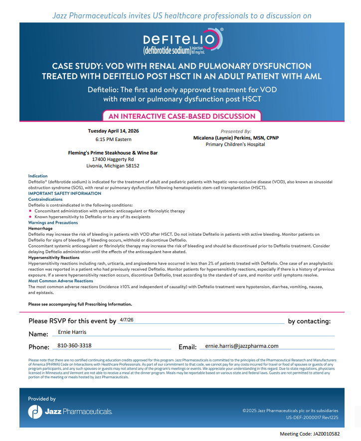 industry event: VOD with renal and pulmonary dysfunction treated with defitelio post HCST in adult p
