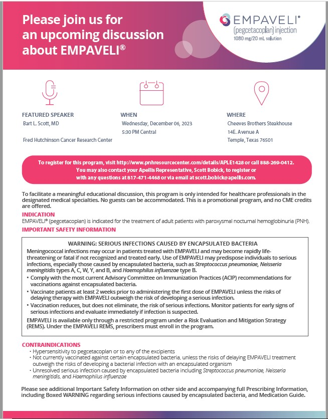 Please RSVP via the link info provided or email me directly @ scott.bobick@apellis.com. I will require RSVPs by Monday to secure this program.