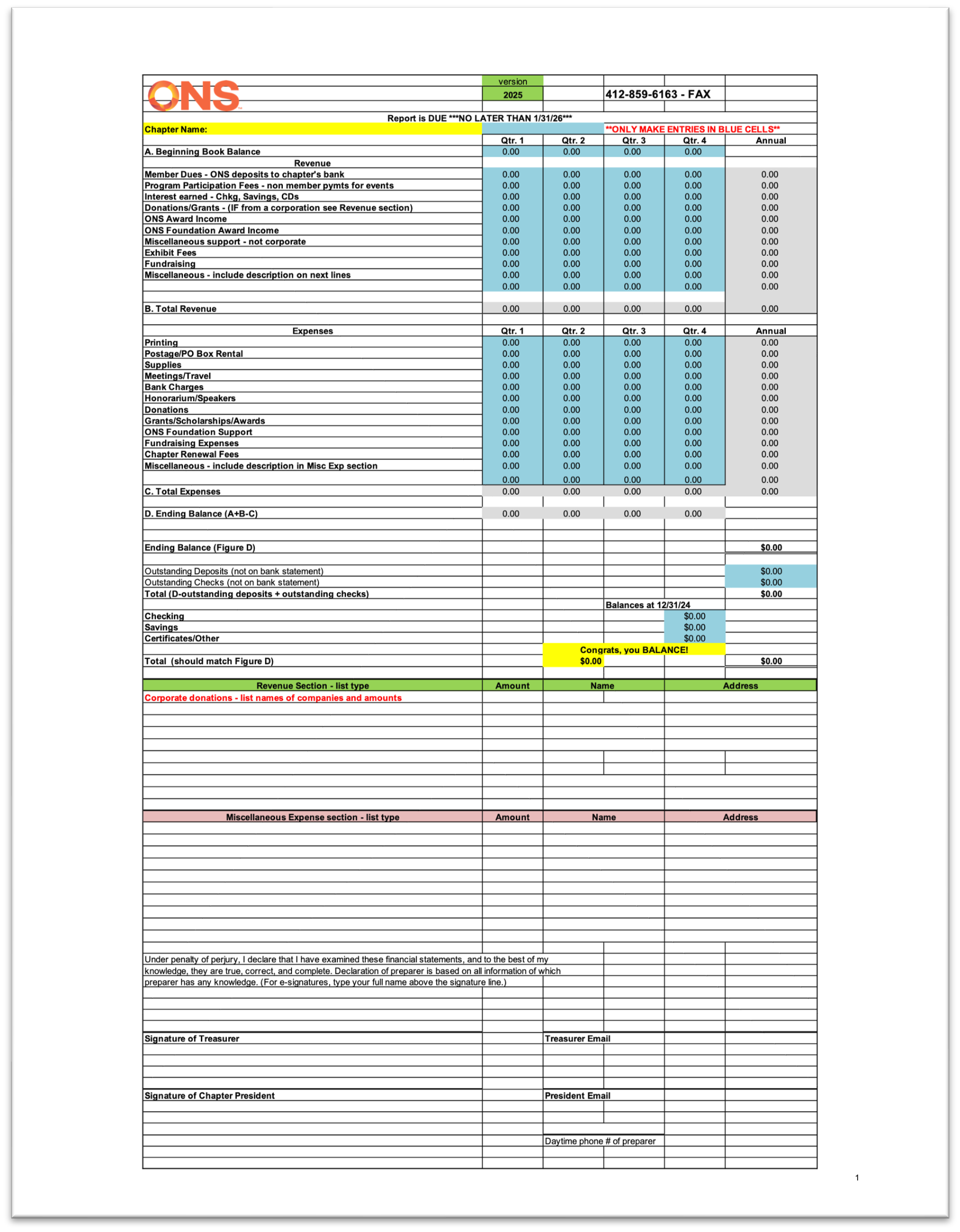 Beginning in 2026, chapters will begin submitting quarterly President's and Treasurer's Reports.