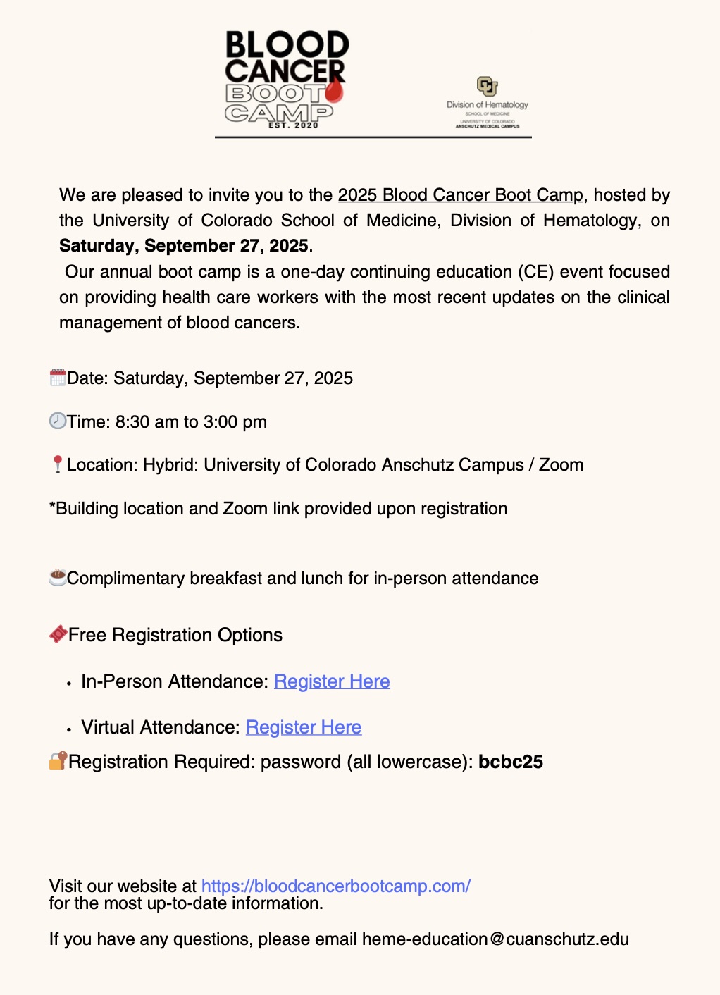 For Questions Contact: heme-education@cuanschutz.edu