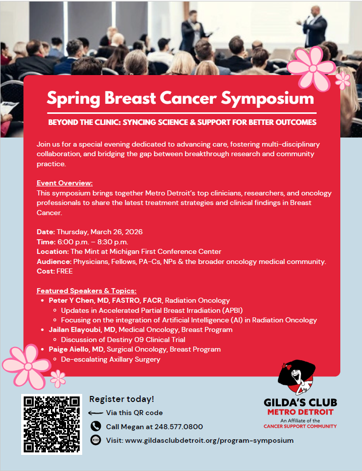 The first symposium is on March 26th at The Mint in Lathrup Village, and will be focused on Breast Cancer.