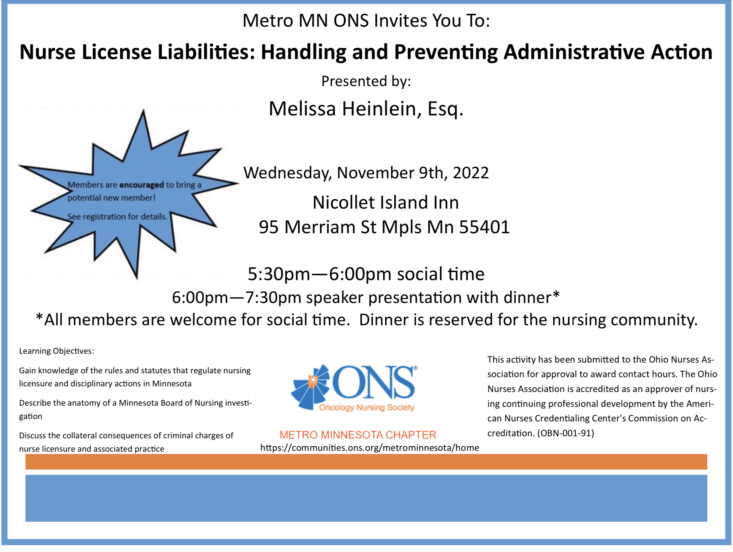 ONS Nov program: Nurse License Liabilities, Melissa Heinlein, Esq.