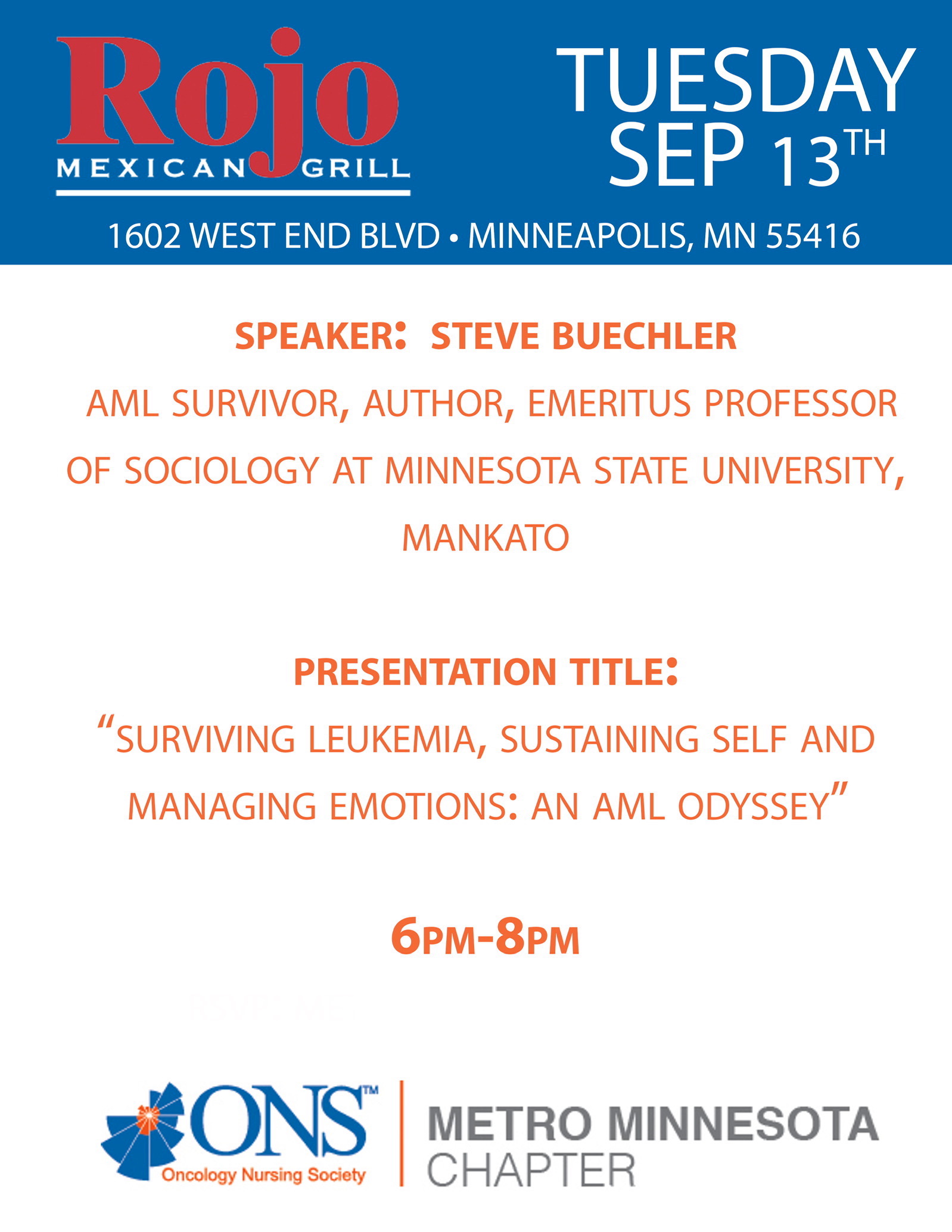Metro MN ONS September Program: Surviving AML with Professor Steve Buechler