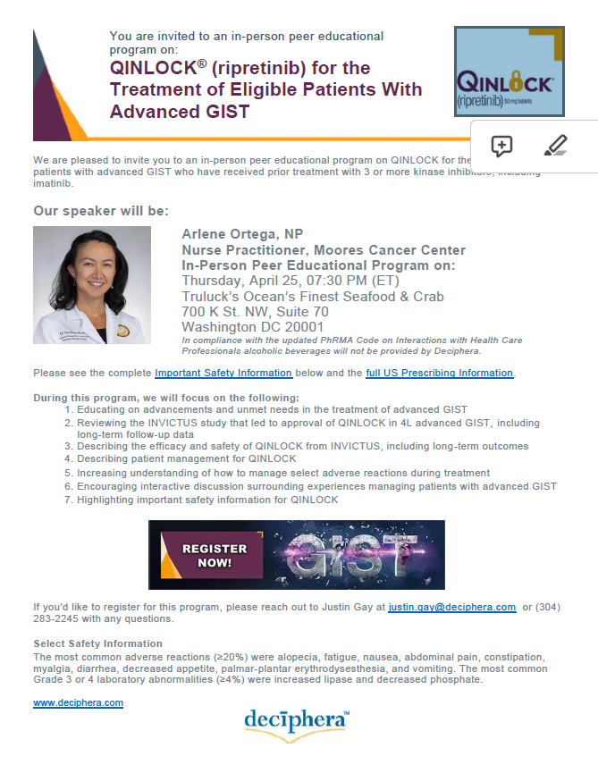 ONS CONGRESS OPPORTUNITY: QINLOCK® (ripretinib) for the Treatment of Eligible Patients With Advance