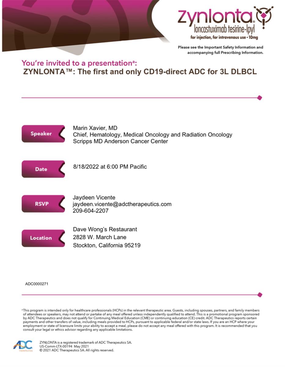 Please join us for our August dinner program in Stockton on Thursday, August 18, 2022 at 6 PM. Please see flyer for details and RSVP to Jay team ASAP! Hope to see you there!