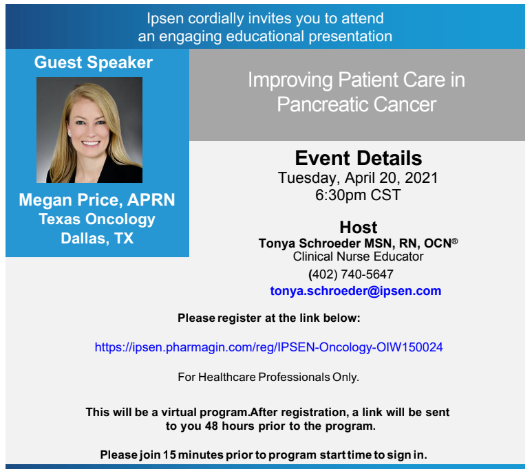 Please join us for a virtual event on "Improving Patient Care in Pancreatic Cancer" on April 20th 2021.
