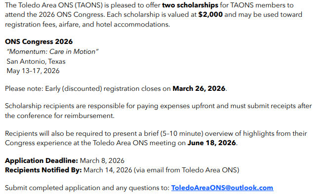 TAONS ONS Congress Scholarships. Deadline for application March 8, 2026